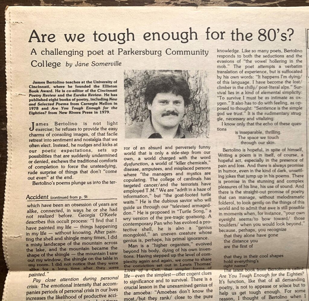 Before starting on the Cutler project, I was tasked with processing an entirely different collection. The Mahn Center had received two boxes of new material to add to the James Bertolino collection. Bertolino is an American poet who began his career in the 70s and continued to write until the 2010s. Processing this new material was certainly a challenge. Not everything fit nicely into the already established categories. His numerous notes and poetry drafts scrawled onto old letters and newspapers were, while valuable, antithetical to well defined categories, to speak nothing of the miscellaneous photos and art pieces.