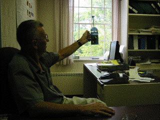 Professor Rudi relaxing in his office and evaluating the anti-oxidents swimming in an exotic blend of Green Tea |
