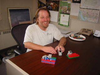 | Dr. Bob playing with his lego set in his office before showing it off in the ME301 class. Dr. Bob is also much admired for his creative contemporary poetry. | Dr. Greg in his office - we are not sure what he is doing - it is too dark in there. |